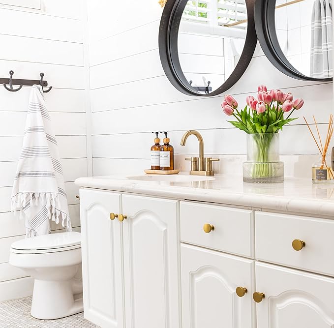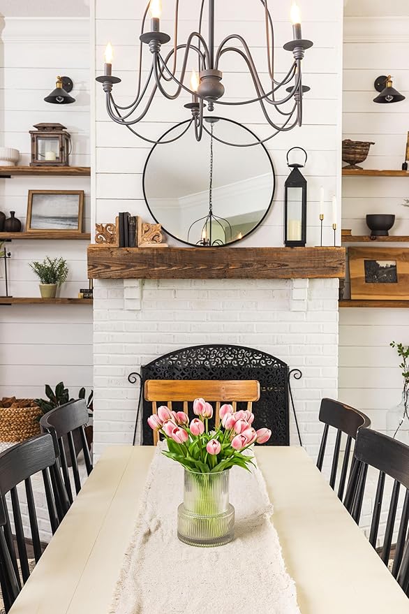 Pink Tulips with Vase Ribbed Glass Vase with 20 Realistic Artificial Flowers Gift Set. Fluted Clear Flower Vase and Fake Tulips Entryway Living Room Table Office Shelf Decor Faux Spring Decor