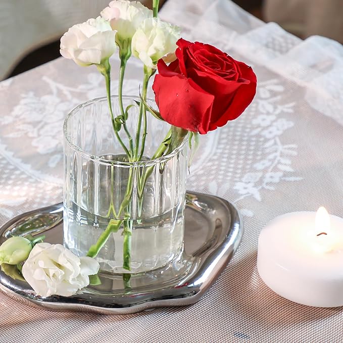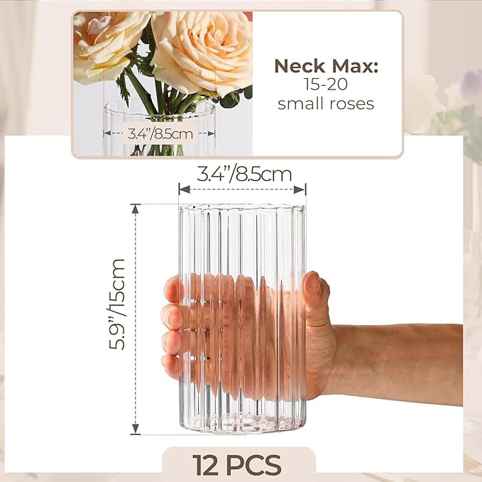 ComSaf Glass Cylinder Vases Pack of 12, Clear Ribbed Bud Vases for Centerpieces Weeding Decoration, 6 inch Tall Clear Flower Vases in Bulk, Hurricane Candle Holder for Party Home Decor