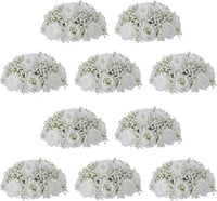 NUPTIO Babys Breath Artificial Flowers: 10 Pcs 8.6 inch Diameter White Rose Ball Fake Arrangement Bouquet for Wedding Centerpiece Event Party Tables Decorations