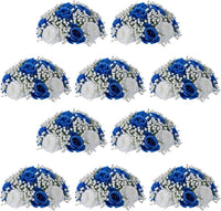 NUPTIO Babys Breath Artificial Flowers: 10 Pcs 8.6 inch Diameter Royal Blue Fake Rose Ball Arrangement Bouquet Centerpiece for Wedding Tables Event Party Decor
