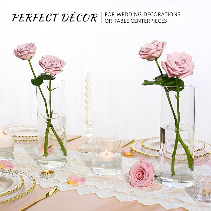 7Pcs Glass Cylinder Vase for Centerpieces 10 Inch Tall Clear Glass Flower Vase Bulk, Glass Hurricane Candle Holder Floral Vases for Table, Floating Candle Vases for Wedding Home Décor