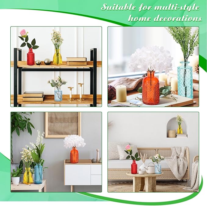 Yaomiao 60 Pcs Vases Bulk Colored Flower Glass Vases Bud Vintage Colored Glass Bottles Colorful Rustic Embossed for Home Wedding Table Decorations Gifts(Vivid Color)