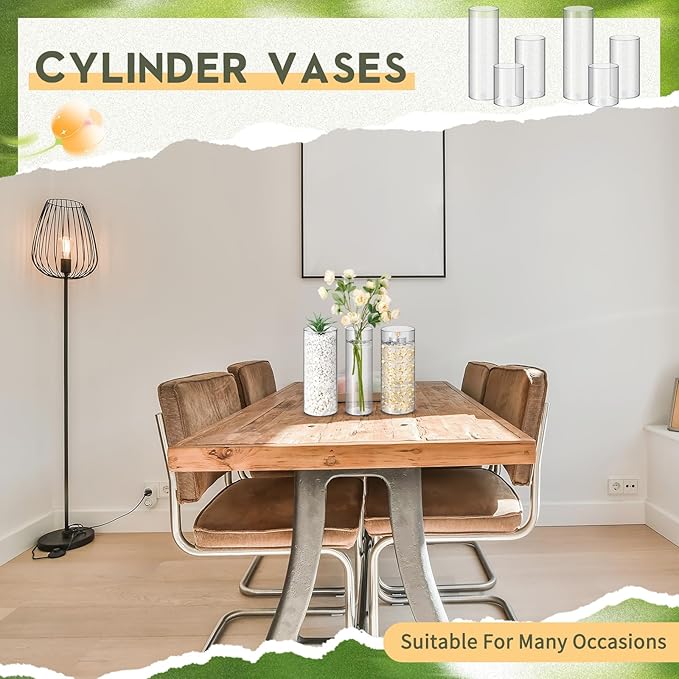 Nuogo 24 Pcs 10 Inch Acrylic Clear Cylinder Vase Plastic Flower Vase Unbreakable Tall for Wedding Centerpieces Party Home Plants Bouquet Decor