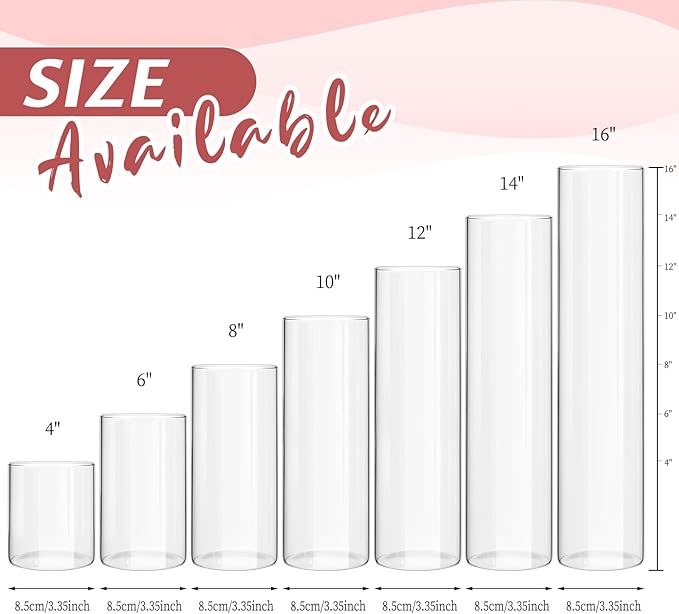 6 Pack Glass Cylinder Vases 8 Inch Tall Clear Flower Vase Bulk Glass Vases Hurricane Floating Candle Holder for Table Centerpiece Party Wedding Home Decor