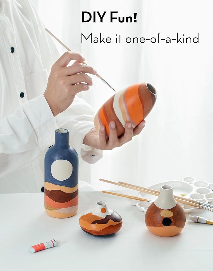 Set of 8 White Ceramic Vases for Dried Pampas Grass Flowers, Aesthetic Boho Modern Decor for Farmhouse Living Room Coffee Table Shelf Fireplace Centerpiece Bedroom Office Desk Home DIY Gifts