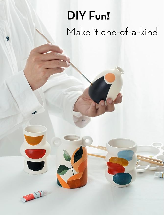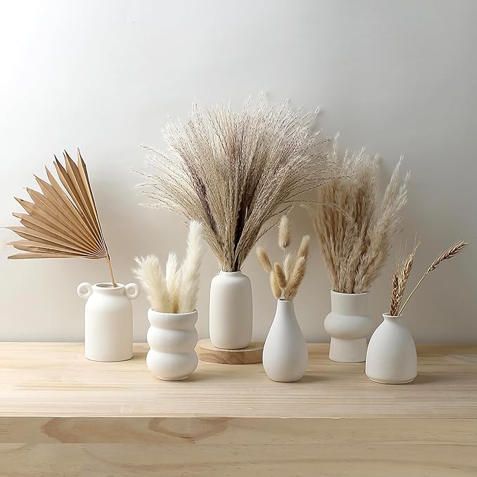Set of 8 White Ceramic Bud Vases for Flowers, Pampas Grass Small Vases for Farmhouse Boho Decor, Decorative Vases for Centerpiece, Wedding Decoration, Home and Office, Room and Table Decor