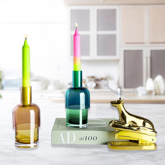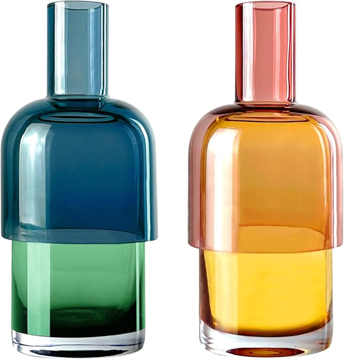 Cloudnola Reversible Glass Flower Vase and Bud Vase Set of 2, Blue & Green and Pink & Yellow, Ideal Gift Set, for Home, Wedding, and Event Decor