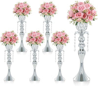 6Pcs Silver Crystal Metal Vase Set - Tulip & Trumpet Wedding Centerpieces, Artificial Flower Arrangement Vases Bulk for Home Decor, Restaurant Table Displays