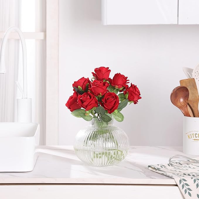 Round Glass Vase, Flower Vases for Bouquet, Ribbed Glass Vases for Flowers, Small Clear Vase for Living Room, Office, Coffee Table, Shelf, Wedding, 6 Inches