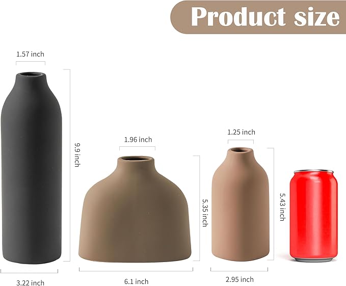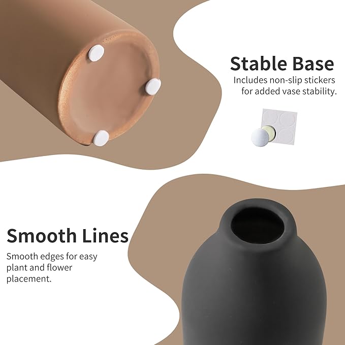 Ceramic Vase Set of 3,Flower Vase Home Decor,Modern Farmhouse Decor, Pampas Grass Dried Fresh Flowers,Bedroom,Living Room,Bookshelf Decoration, Centerpiece Table Decor,Boho Decor.