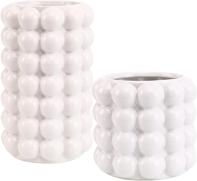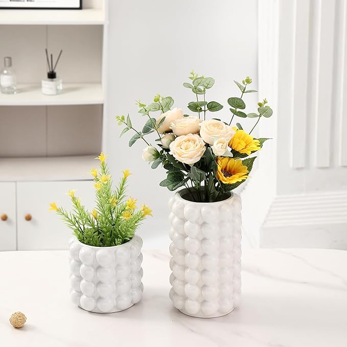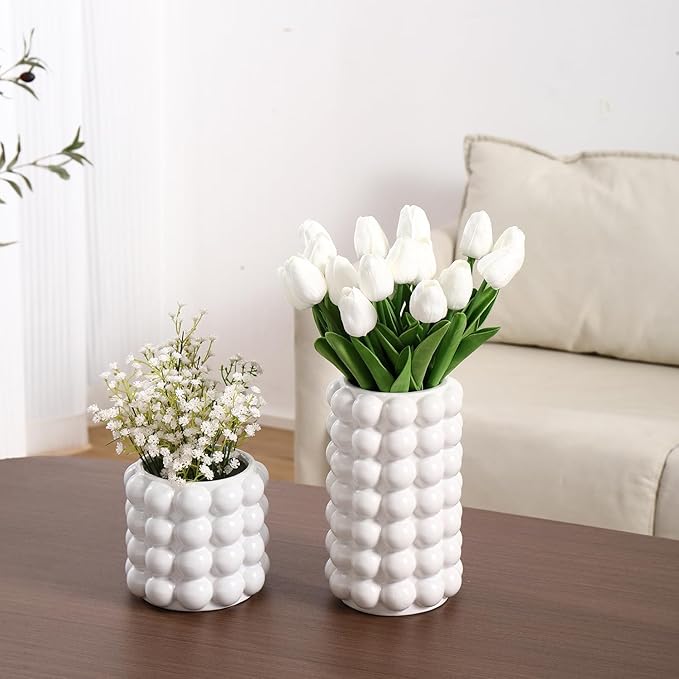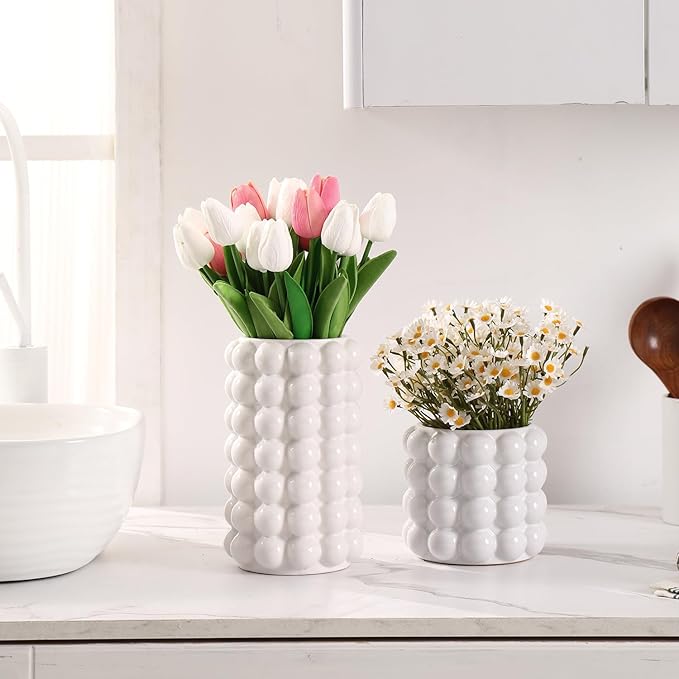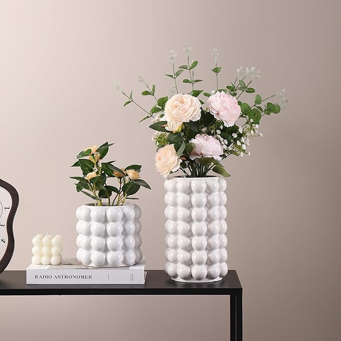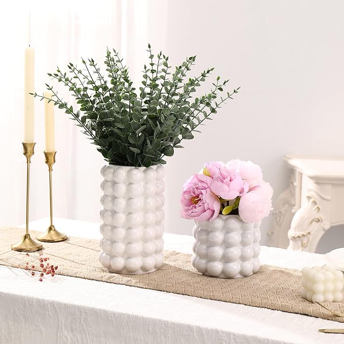 Bubble Vases, Set of 2 White Ceramic Vases, Short Vases, Ceramic Flower Vases, Unique Vases, Tall Bubble Vases for Coffe Table Decor, Decorative Vases for Living Room, Dining Table, Wedding