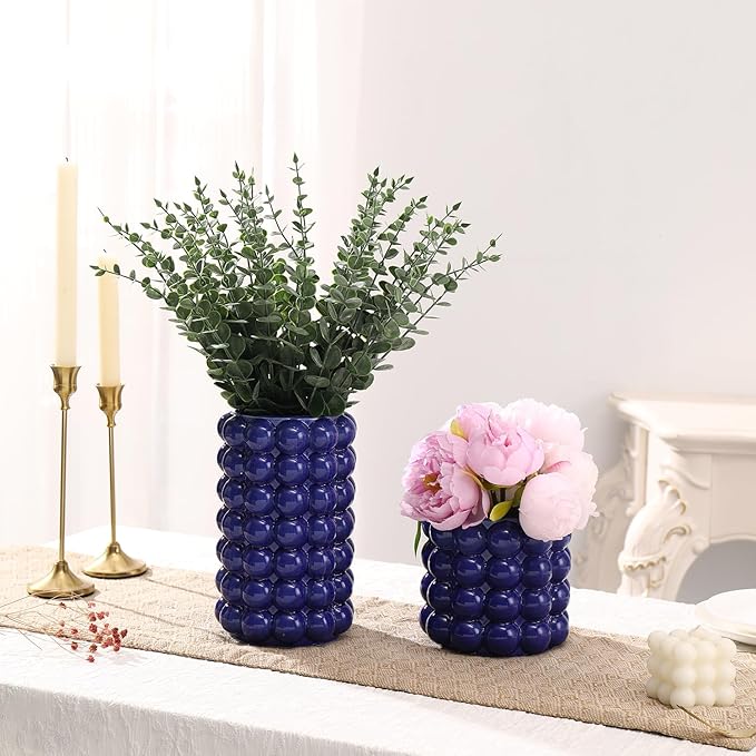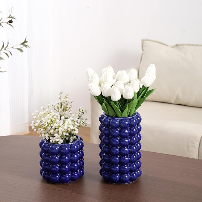 Bubble Vases, Set of 2 Blue Ceramic Vases, Short Vases, Ceramic Flower Vases, Unique Vases, Tall Bubble Vases for Coffe Table Decor, Decorative Vases for Living Room, Dining Table, Wedding