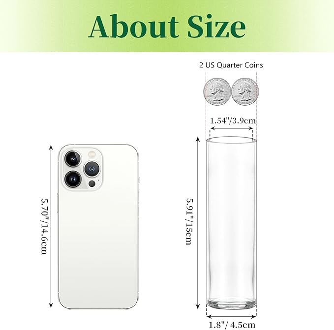 Hewory Cylinder Glass Bud Vases: Set of 12 Small Clear Skinny Single Flower Vase for Centerpieces - Minimalist Bulk Vases for Wedding Birthday Bridal Shower Party Events Table Decor, 5.91"(H)×1.8"(D)