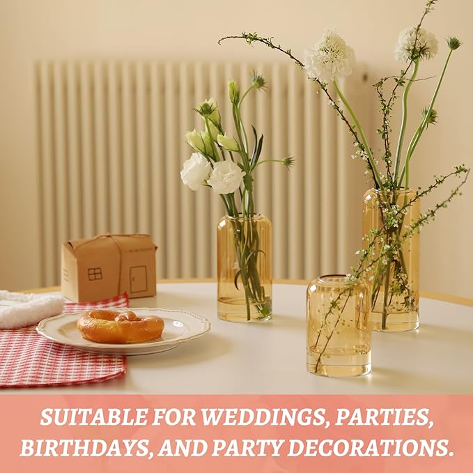 24pcs Glass Bud Vases Set, Clear Flower Vase for Centerpieces, Small Vases for Flowers, Decor Centerpiece for Bathroom, Decorative Vases for House Warming (Amber)