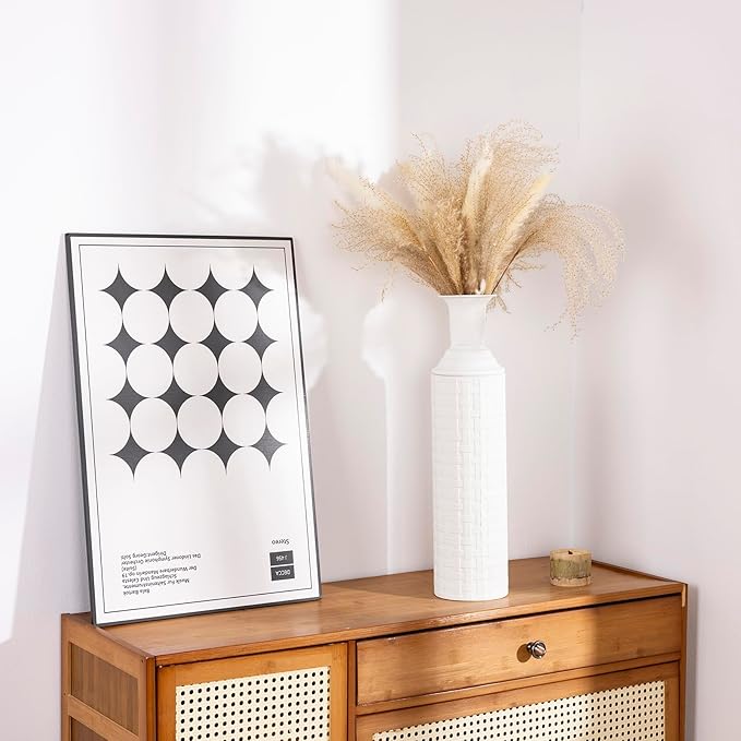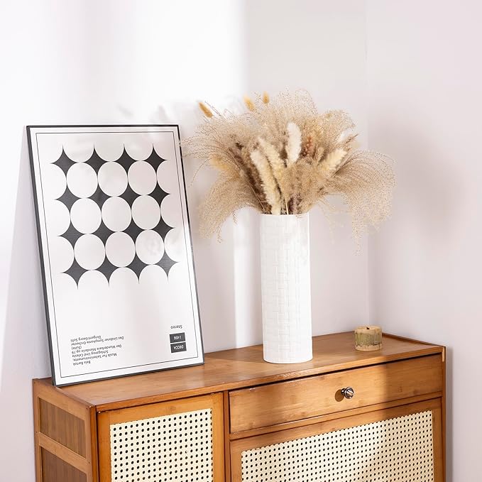 Tall Floor Vase for Pampas Grass, Extra Large Vase Decor, Set of 3 Floor Vases Decorative Tall Vases Home Decor, Metal Material, Handcrafted Rattan Pattern, Matte White