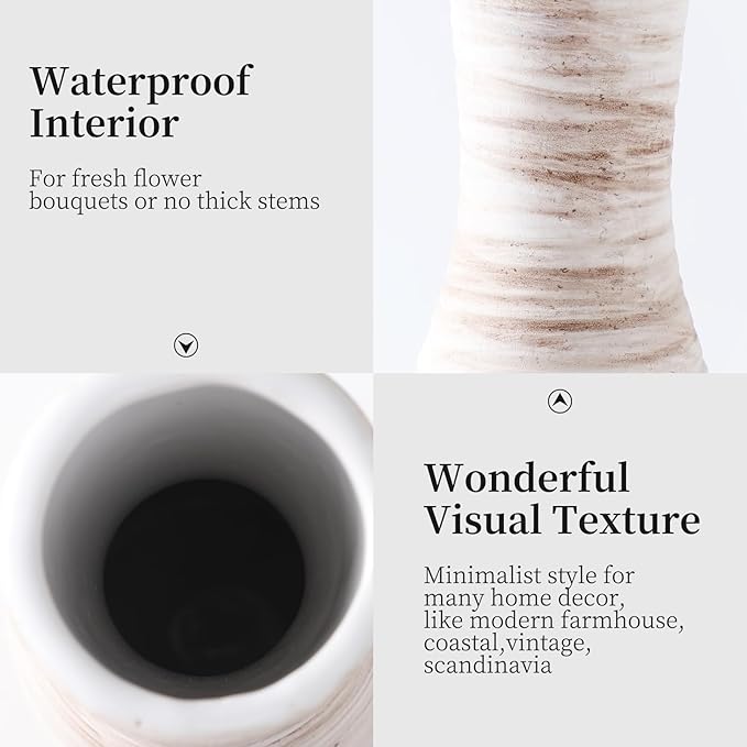 ALMA 17" Tall Floor Vase for Pampas Grass,White Brown Ceramic Centerpiece for Dresser,Skinny Pampas Grass Vessel for Floor,Entryway Table,Fireplace Decor