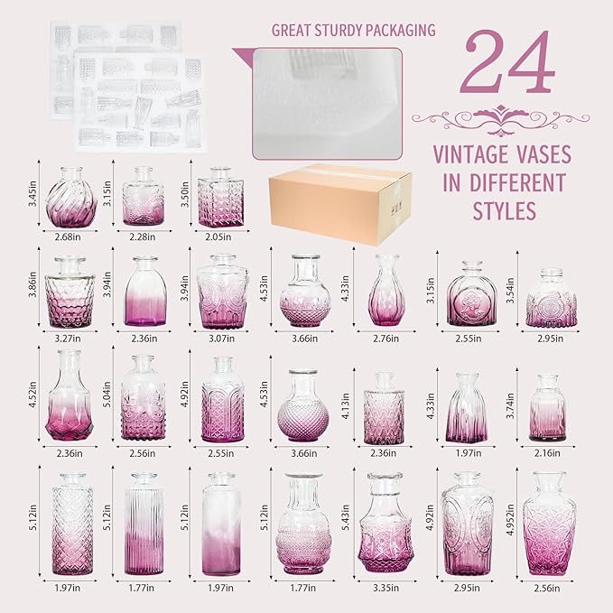 24PCS Mini Bud Vases As Wedding Centerpieces for Tables,Clear Bud Vases for Flowers,Small Flower Vases Suitable for Birthday Party,Anniversary,Wedding Reception,Baby Shower (Purple)