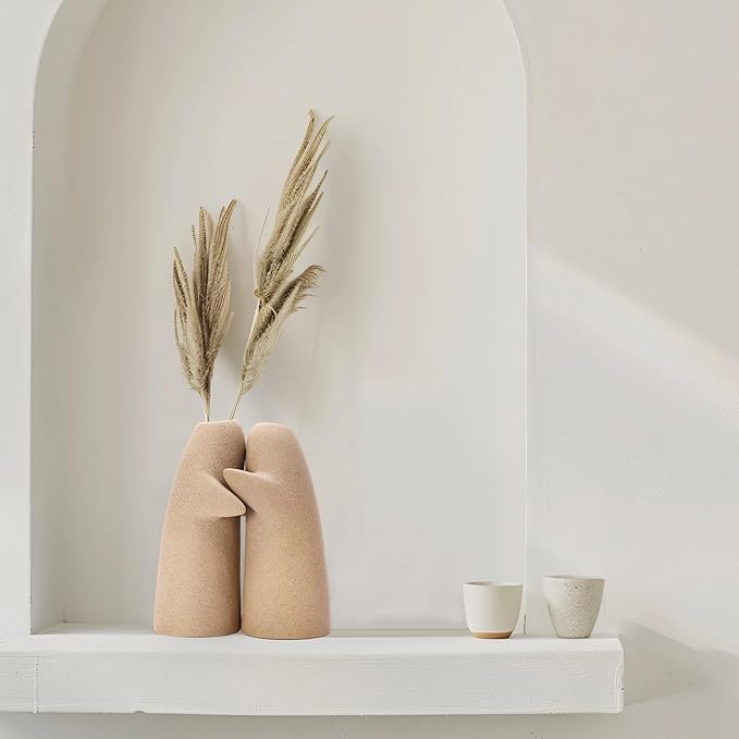 2 Pack Flower Vases for Bouquet, Clay Small Ceramic Vases for for Centerpieces Home Decor Accents Terracotta Vase for Table Entryway Bookshelf Living Room