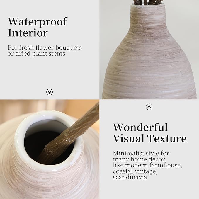 ALMA 2025 Updated 11in Tall White Beige Vase for Boho Home Decor, Thin Ceramic Vase for Single Rose, Pampas Grass, Decorative Rustic Vase for Flowers, Dining Table Centerpieces,Table Top Decoration