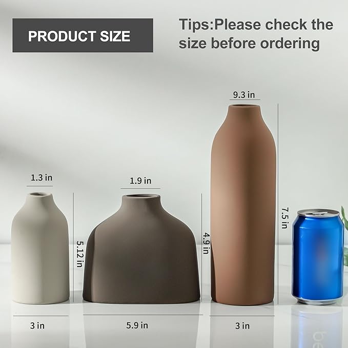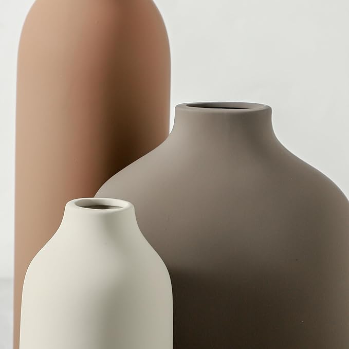 Ceramic Vase Set of 3,Flower Vase Home Decor,Rustic Modern Farmhouse Decor Pottery Vases, Pampas Grass Dried Fresh Flowers,Bedroom,Living Room,Bookshelf Decoration, Centerpiece Table Decor,Boho Decor.