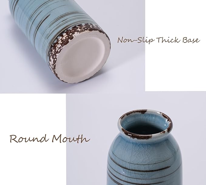 Ceramic Vase Set of 3, Farmhouse Decorative Vase for Pampas Grass, Living Room, Bathroom,Bookshelf, Centerpieces (Blue/Navy Blue/Yellow)