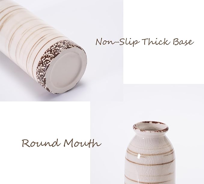 Beige Ceramic Vase Set of 3, Farmhouse Decorative Vase for Pampas Grass, Living Room, Bathroom, Bookshelf, Centerpieces Beige