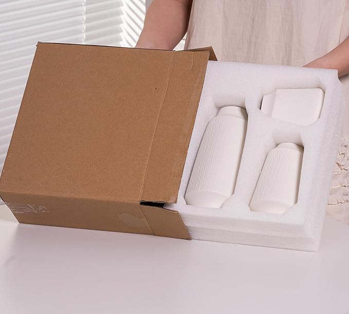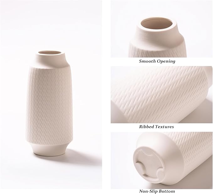 Ceramic Vase Set of 3, Modern Multicolor Pattern Flower Vases for Home Decor, Office, Centerpieces, Boho Farmhouse Style (White)