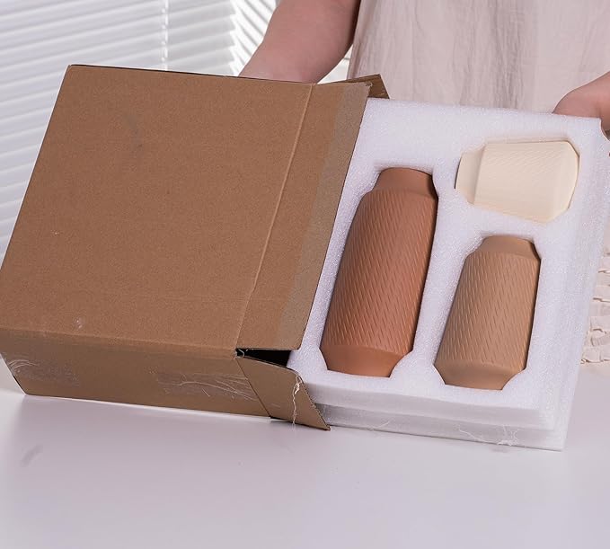 Ceramic Vase Set of 3, Modern Multicolor Pattern Flower Vases for Home Decor, Office, Centerpieces, Boho Farmhouse Style (Khaki/Brown/Beige)