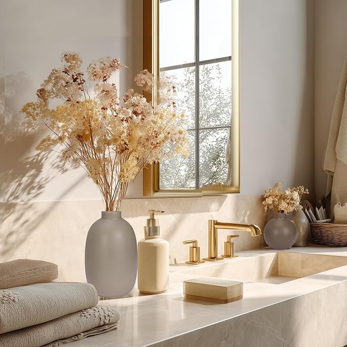 CUCUMI Ceramic Vase Set of 5, Home Decor Farmhouse Décor Handmade Pottery Vases for Pampas Grass, Dried Fresh Flowers, Table, Living Room, Kitchen, Shelf, Entryway Mantel Neutral Tones