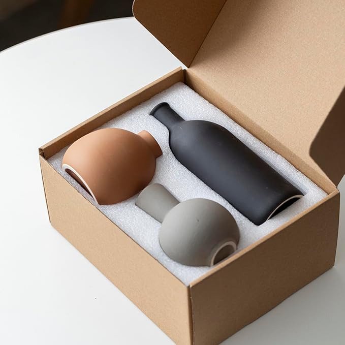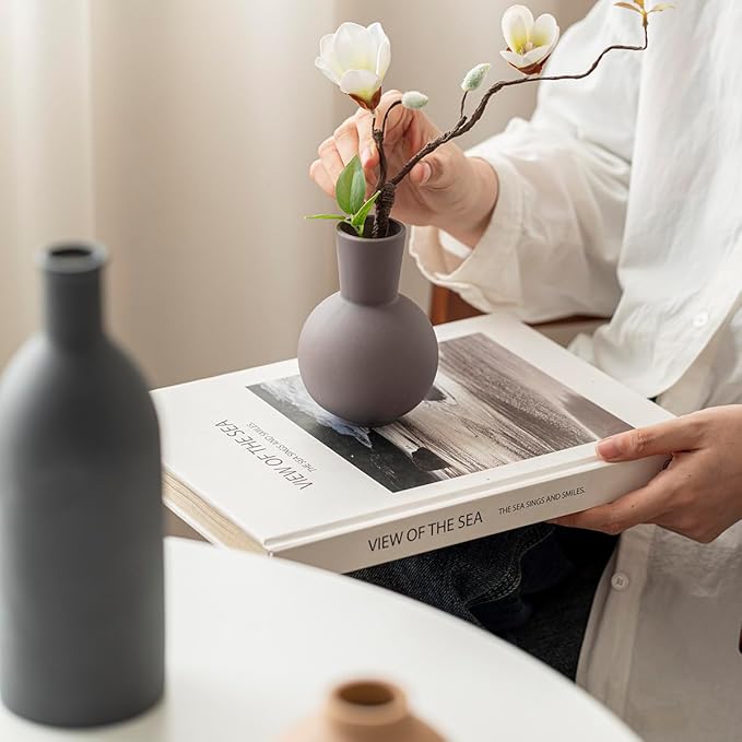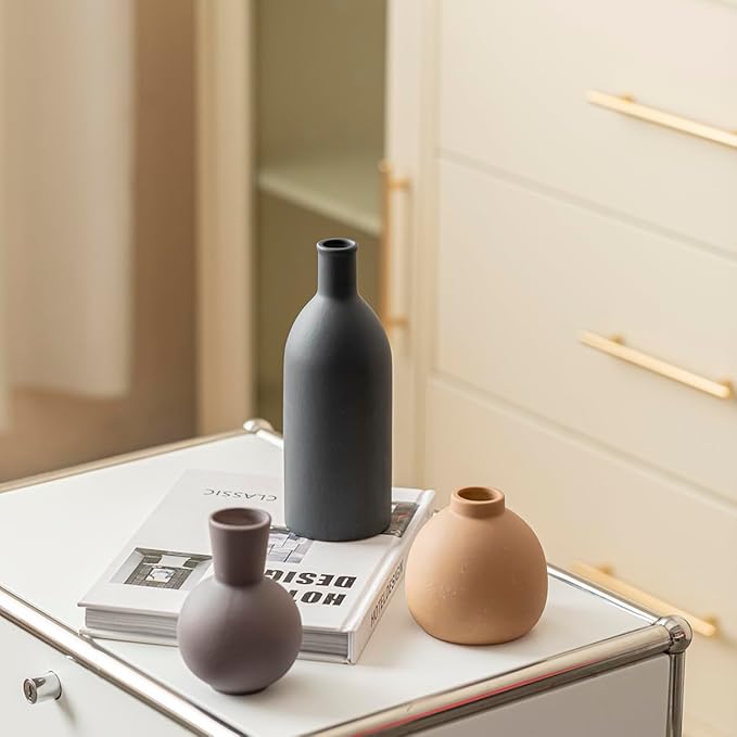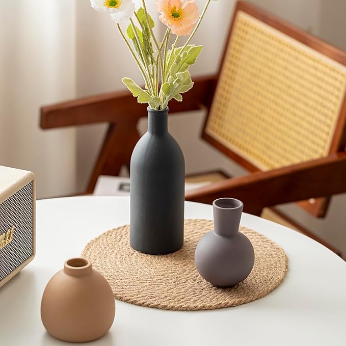 Modern Ceramic Vase Set of 3, Decorative Flower Vases for Home, Multicolor Pottery Vases for Living Room, Kitchen, Bedroom, Shelf, Rustic Farmhouse (Blue Black)