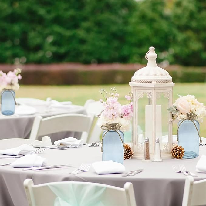 Vintage Glass Flower Vase,6 Pack Blue Farmhouse Glass Centerpiece Vases Mason Jars for Weddings, Parties & Home Decor Bulk (6, Blue)
