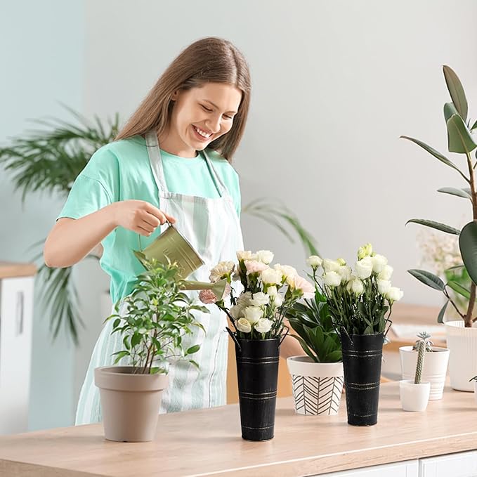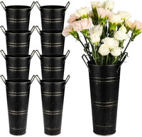 8 Pcs Galvanized Bucket Flower Bar, 9 Inch Flower Bucket and Metal Vase with Handles, Flower Bar Supplies and Buckets Farmhouse Vases for Wedding and Cut Flower (Black, 8 Pcs 9inch)