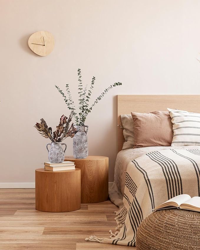 Ceramic Vase Set of 3, Handmade Rustic Farmhouse Vases with Handles, Glazed Interior, Aged Terracotta Finish, Boho Home Decor for Table, Shelf, Mantel, Flower Arrangement
