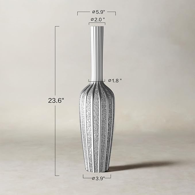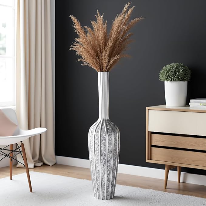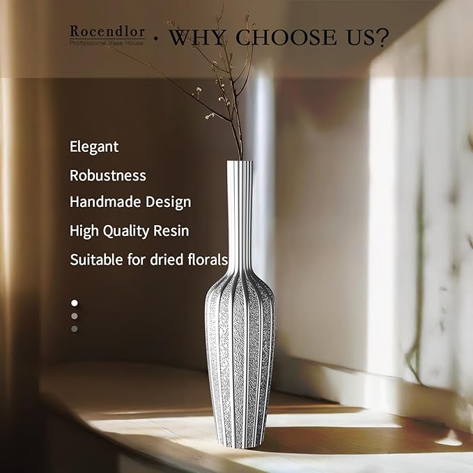 Elegant Silver Floor Vase - 23.62 Inch Tall Decorative Vase for Dried Flowers & Home Décor, Resin Tall Floor Vase