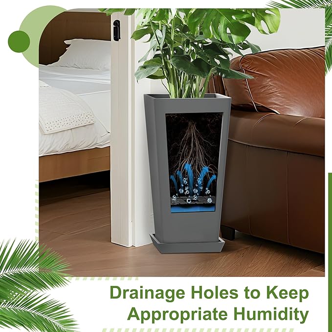 24-Inch Tall Planters Set of 2 for Outdoor and Indoor Use,Tapered Flower Pots with Drainage Tray, Front Porch and Patio Decor,Ideal for Large Plants, Grey Sale