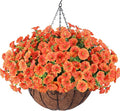 Artificial Fake Flowers Plants Hanging Baskets Outdoor Outside Spring Decor, Faux Silk Purple UV Resistant Look Real Morning Glory Home Patio Porch Balcony Decoration