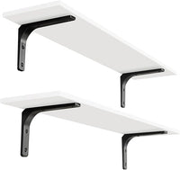 DINZI LVJ Long Wall Shelves, 31.5 x 7.9 x 6.1 Inches, Set of 2 White Floating Shelves, Easy-to-Install, Large Storage Ledges with Sturdy Metal Brackets for Living Room, Bathroom, Bedroom, Kitchen