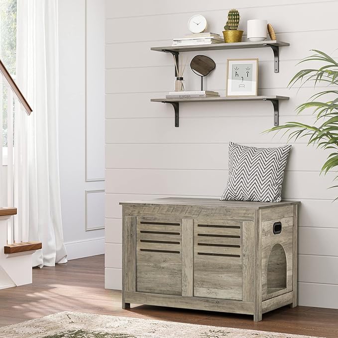 DINZI LVJ Long Wall Shelves, 31.5 Inch Wall Mounted Shelves Set of 2, Easy-to-Install, Wall Storage Ledges with Sturdy Metal Brackets for Living Room, Bathroom, Bedroom, Kitchen, Gray Wash