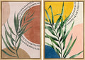 SIGNFORD Framed Canvas Print Wall Art Set Retro Mid-Century Geometric Forest Plants Abstract Shapes Illustrations Modern Art Decorative Bohemian for Living Room, Bedroom, Office - 24"x36"x2 Black