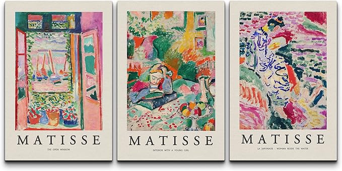 wall26 Canvas Wall Art Print Set French Floral Rainbow Landscapes Henri Matisse Nature Plants Illustrations Modern Relax/Calm Multicolor for Living Room, Bedroom, Office - 16"x24" x 3 Panels