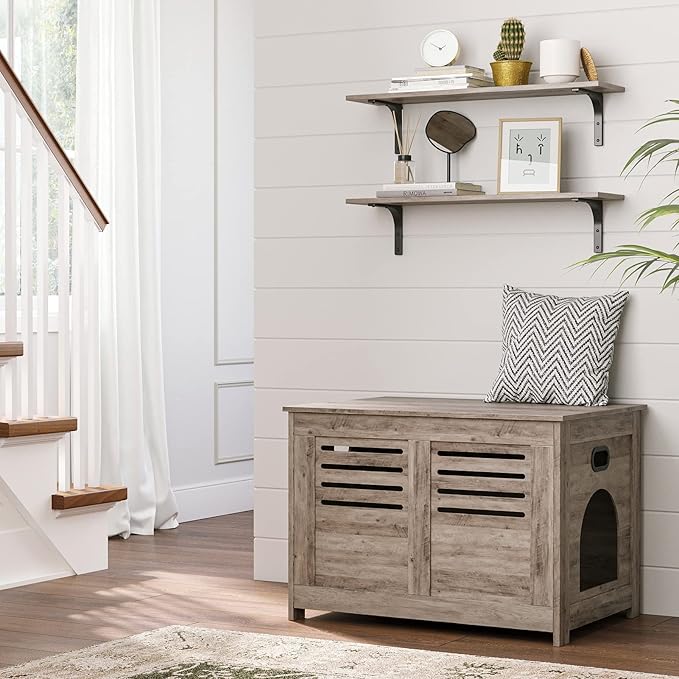 DINZI LVJ Long Wall Shelves, 31.5 Inch Wall Mounted Shelves Set of 2, Easy-to-Install, Wall Storage Ledges with Sturdy Metal Brackets for Living Room, Bathroom, Bedroom, Kitchen, Greige
