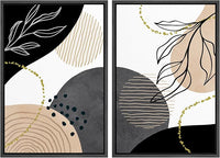 SIGNFORD Framed Canvas Print Wall Art Set Mid-Century Nordic Geometric Ring Plants Abstract Shapes Illustrations Modern Art Decorative Bohemian for Living Room, Bedroom, Office - 16"x24"x2 Black