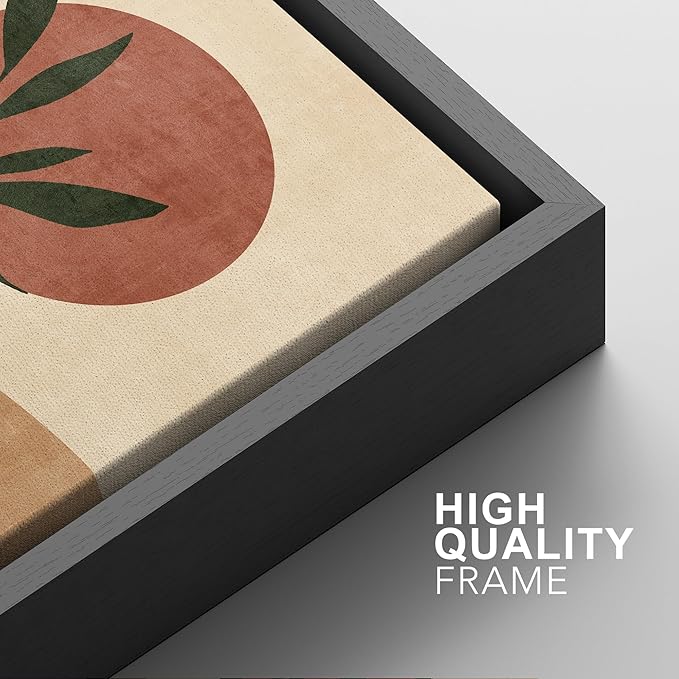 SIGNFORD Framed Canvas Print Wall Art Set Sun & Moon Mid-Century Desert Plants Abstract Shapes Illustration Modern Art Decorative Nordic Nature for Living Room, Bedroom, Office - 16"x24"x2 Black