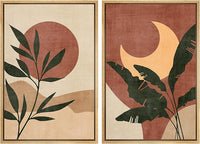 SIGNFORD Framed Canvas Print Wall Art Set Sun & Moon Mid-Century Desert Plants Abstract Shapes Illustration Modern Art Nordic Nature for Living Room, Bedroom, Office - 24"x36"x2 Natural