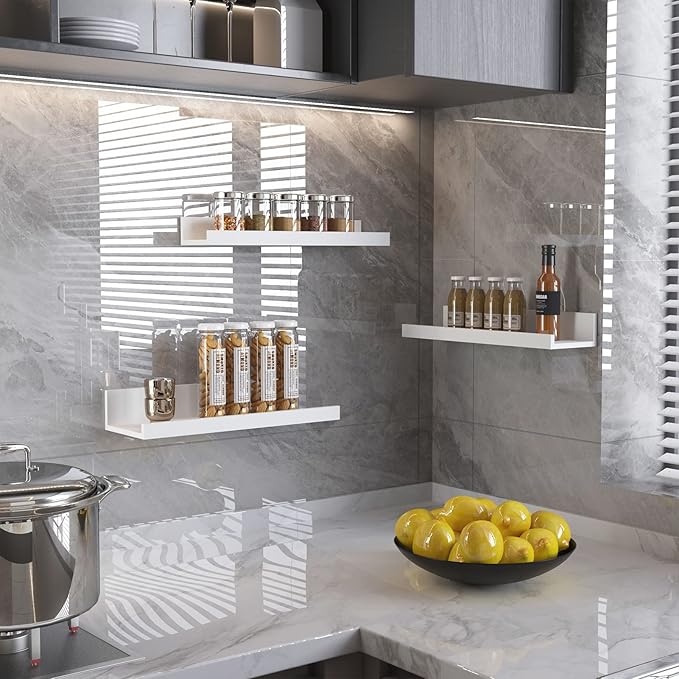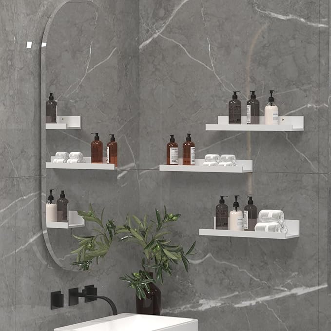 Giftgarden 16 Inch White Floating Shelves for Wall Mount, Modern Wood Wall Shelf Ledge for Bathroom Bedroom Living Room Kitchen Nursery Storage, Set of 3 Different Sizes