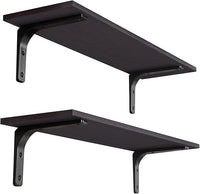 DINZI LVJ Long Wall Shelves, 31.5 Inch Wall Mounted Shelves Set of 2, Easy-to-Install, Floating Storage Ledges with Sturdy Metal Brackets for Living Room, Bathroom, Bedroom, Kitchen, Espresso