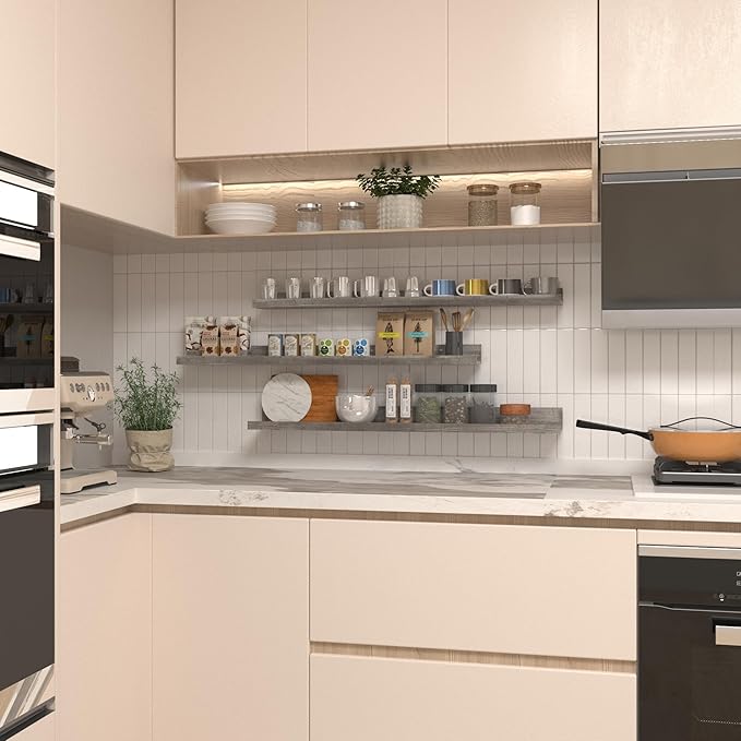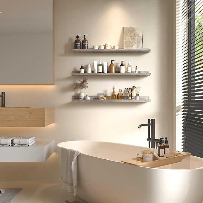 Giftgarden 36 Inch Grey Floating Shelves for Wall Mount, Gray Wood Wall Shelf Ledge for Bathroom Bedroom Living Room Kitchen Storage, Set of 3 Different Sizes