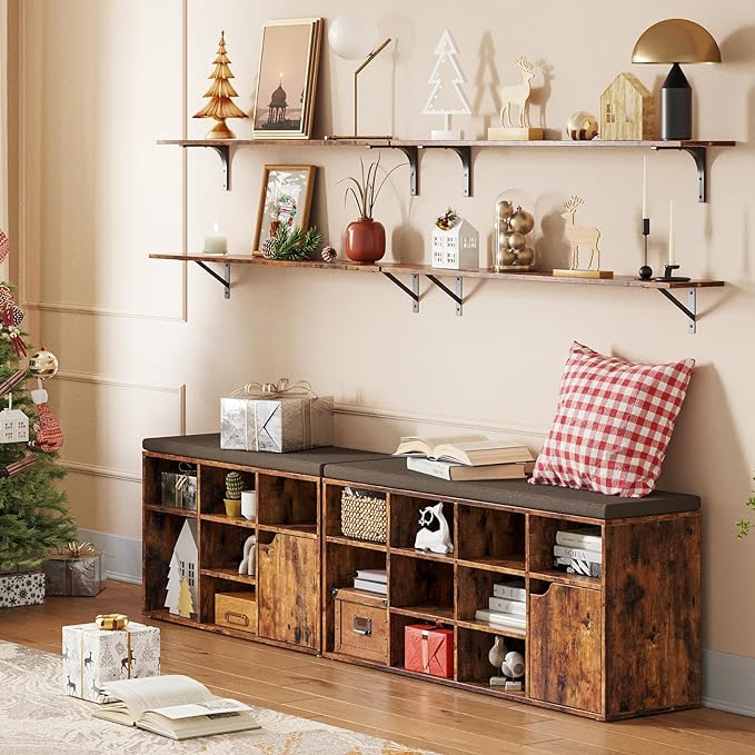 DINZI LVJ Long Wall Shelves, 47.3Inch Wall Mounted Shelves Set of 2, Extra Large Wall Storage Ledges with Sturdy Metal Brackets for Living Room, Bathroom, Bedroom, Kitchen, Rustic Brown