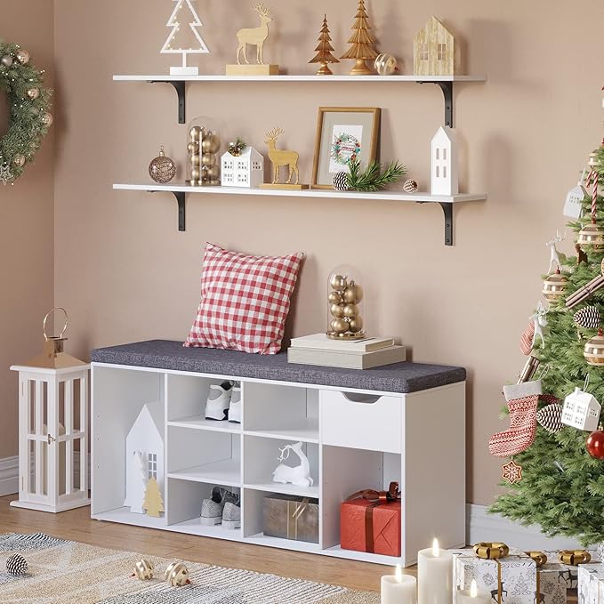 DINZI LVJ Long Wall Shelves, 47.3Inch Wall Mounted Shelves Set of 2, Extra Large Wall Storage Ledges with Sturdy Metal Brackets for Living Room, Bathroom, Bedroom, Kitchen, White