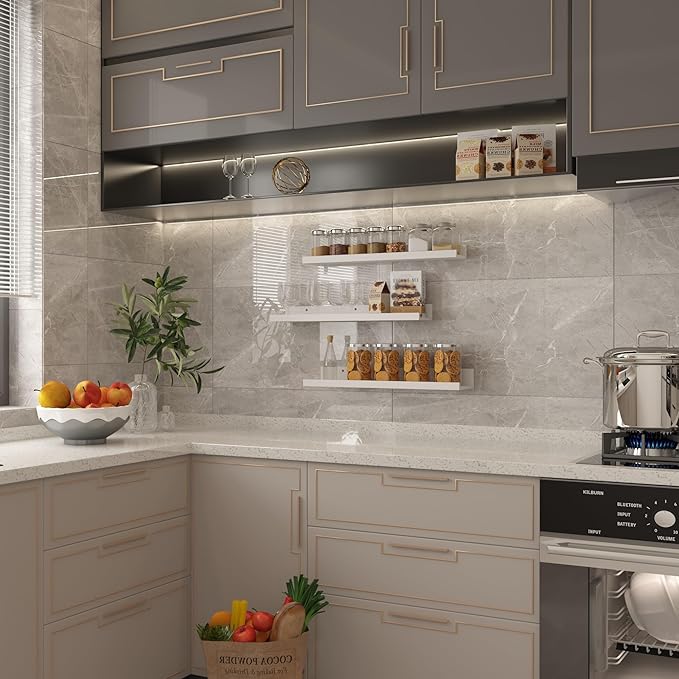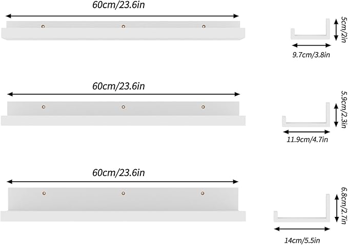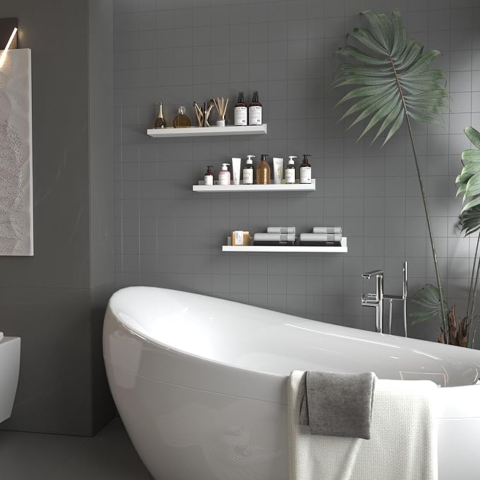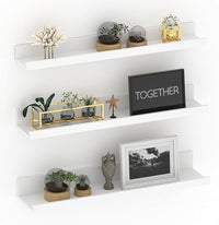 Giftgarden 24 Inch White Floating Shelves for Wall Mount, Modern Wood Wall Shelf Ledge for Bathroom Bedroom Living Room Kitchen Nursery Storage, Set of 3 Different Sizes